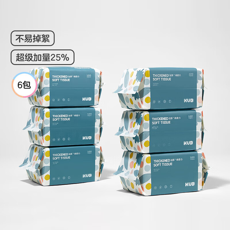 【JD自营】可优比(KUB)婴儿洗脸巾 加厚加大100抽 6包
