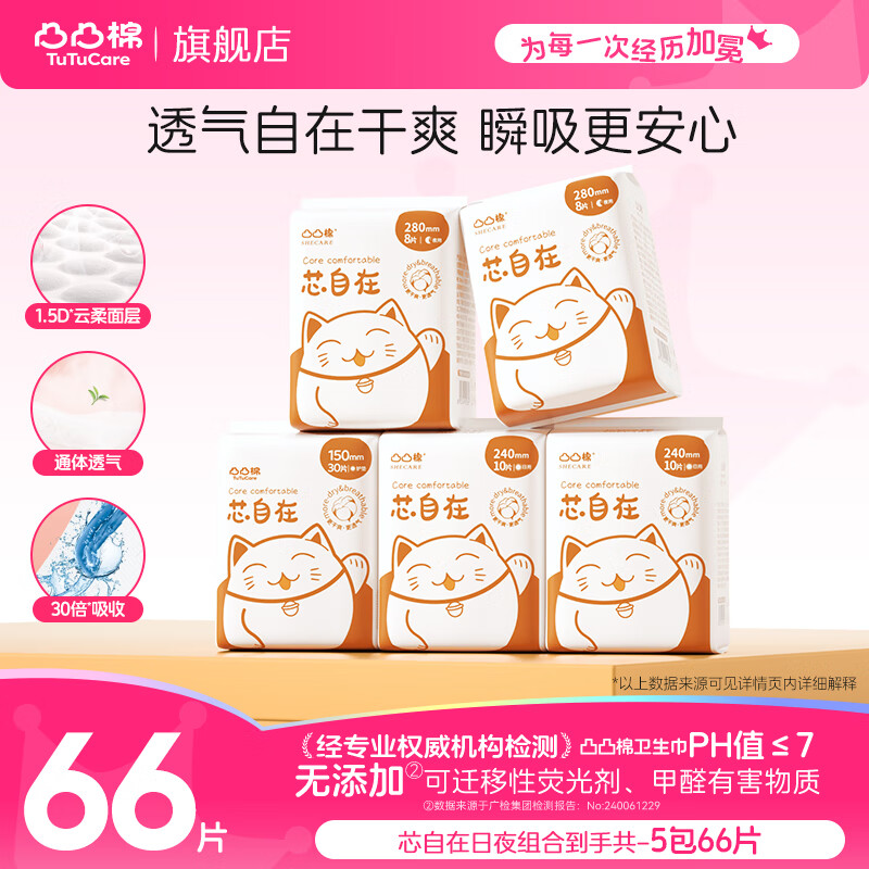 凸凸棉 芯自在卫生巾组合5包66片【16.9】