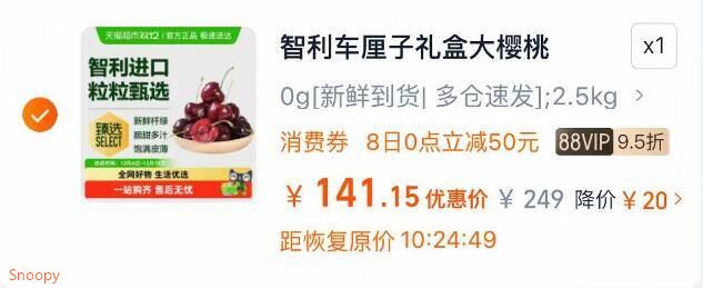 2.最后一步 凑单商品1件 3J车厘子5斤88到手141元 好单发报员 2025年12月06日 14:10 0 举报 2.最后一步 凑单商品1件https://m.tb.cn/h.70vxavx3J车厘子5斤88到手141元 复制文案