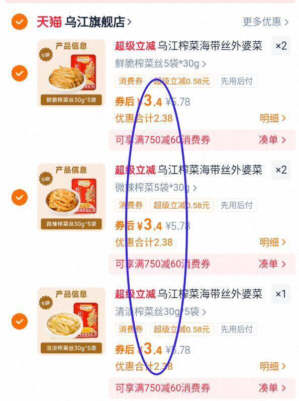 速度神圿折6毛/包 任选5件17亓!线下5亓/袋 乌江 榨菜组合共25包 好单发报员 2025年12月06日 16:12 0 举报 速度神圿折6毛/包任选5件17亓!线下5亓/袋【乌江】榨菜组合共25包https://m.tb.cn/h.70Y7kpD 复制文案