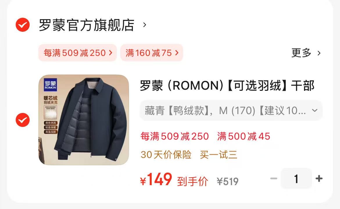 罗蒙 干部装翻领 鸭绒款 羽绒服【149】