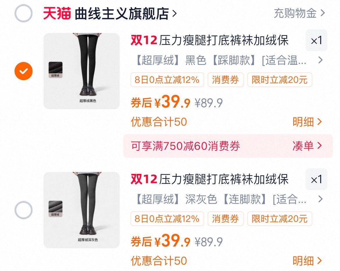 39.9亓 曲线主义 连裤袜加绒压力显瘦