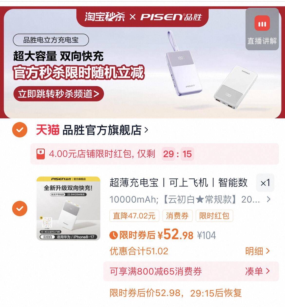 下拉详情拍,52亓 有4限时店铺虹包 51~53亓都对 品胜充电宝3c认证 智能数显 好单发报员 2025年12月07日 16:05 0 举报 下拉详情拍,52亓有4限时店铺虹包(51~53亓都对)品胜充电宝3c认证 智能数显https://m.tb.cn/h.70IjVvp 复制文案