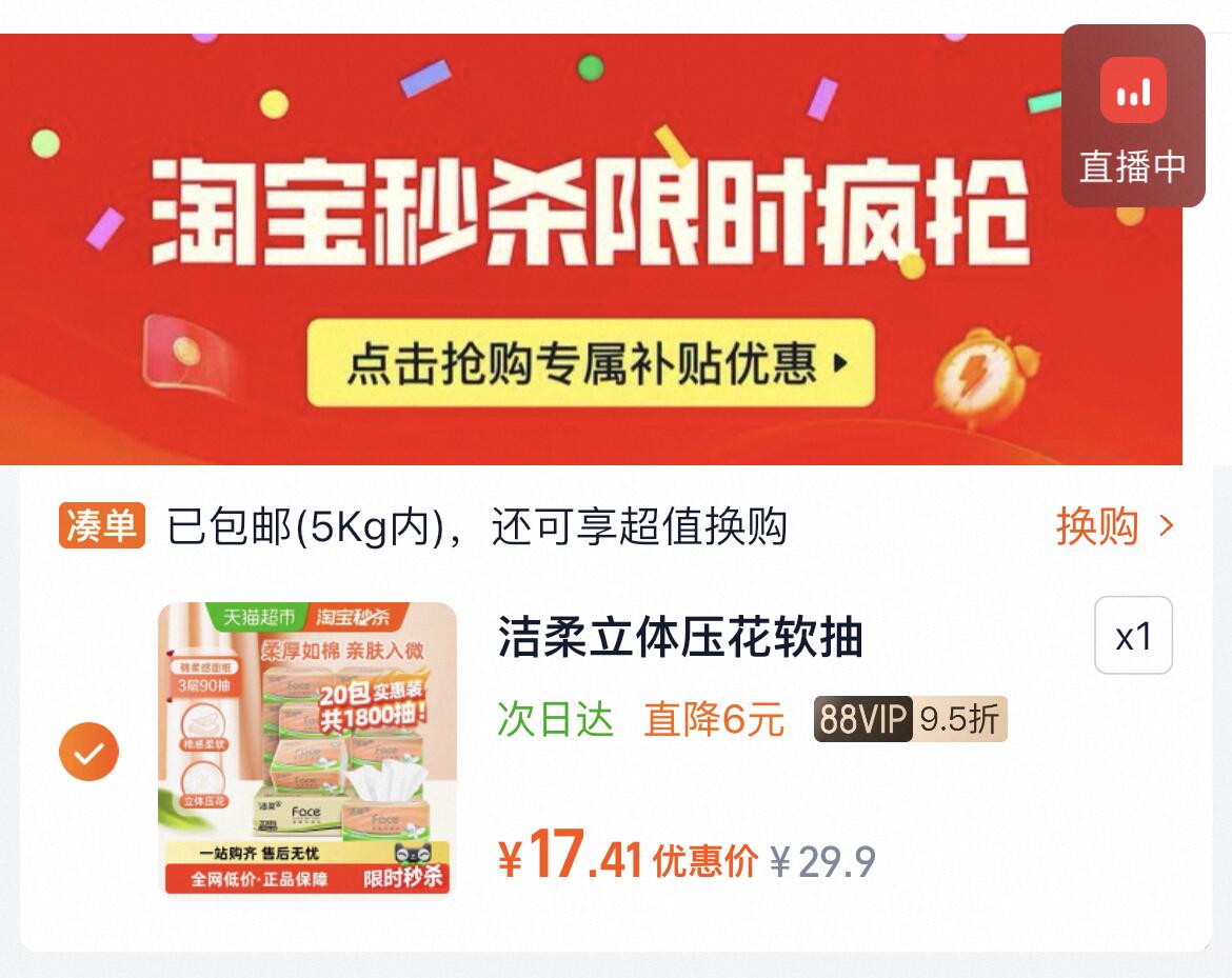 下拉详情拍 0.8/包 洁柔 抽纸90抽*20包 好单发报员 2025年12月07日 17:14 0 举报 下拉详情拍(0.8/包)洁柔 抽纸90抽*20包https://m.tb.cn/h.70YWlTd 复制文案