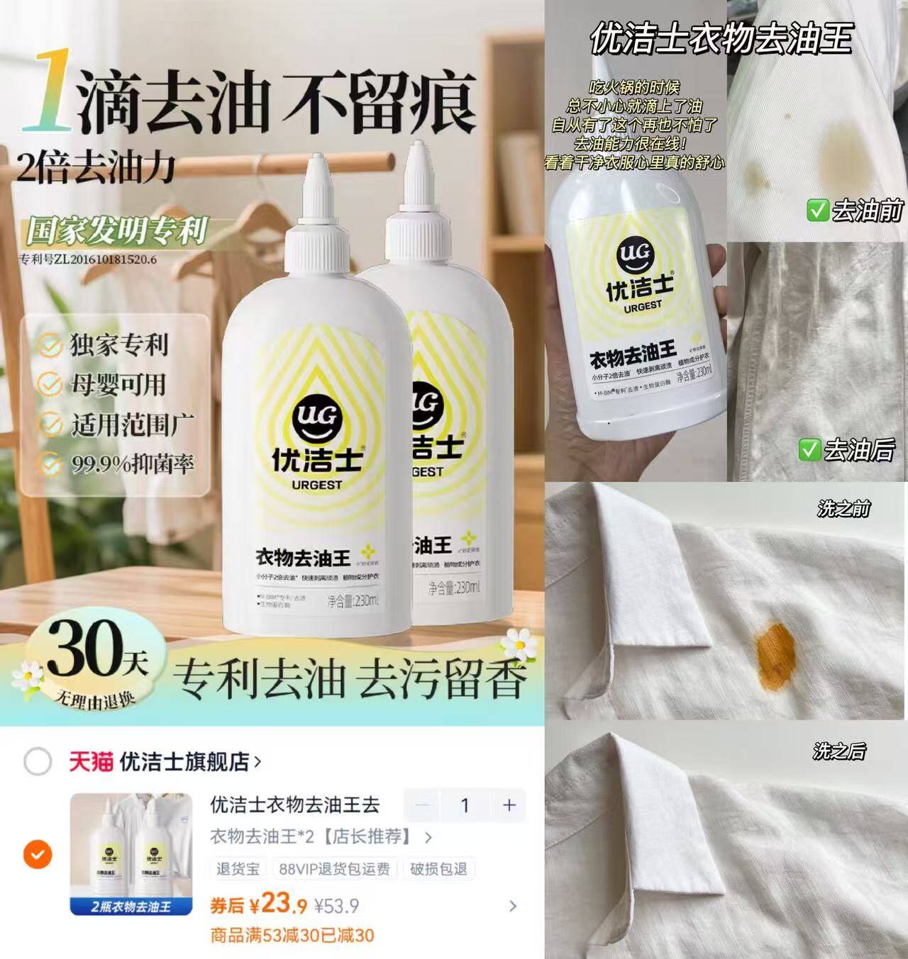 优洁士衣物去油王230ml ②瓶装23元.911.9/瓶 温和配方 快速去污不留痕! 好单发报员 2025年12月07日 17:14 0 举报 优洁士衣物去油王230ml②瓶装23元.911.9/瓶https://m.tb.cn/h.70YWcHU温和配方 快速去污不留痕!油渍污渍的衣服终于有救啦 复制文案