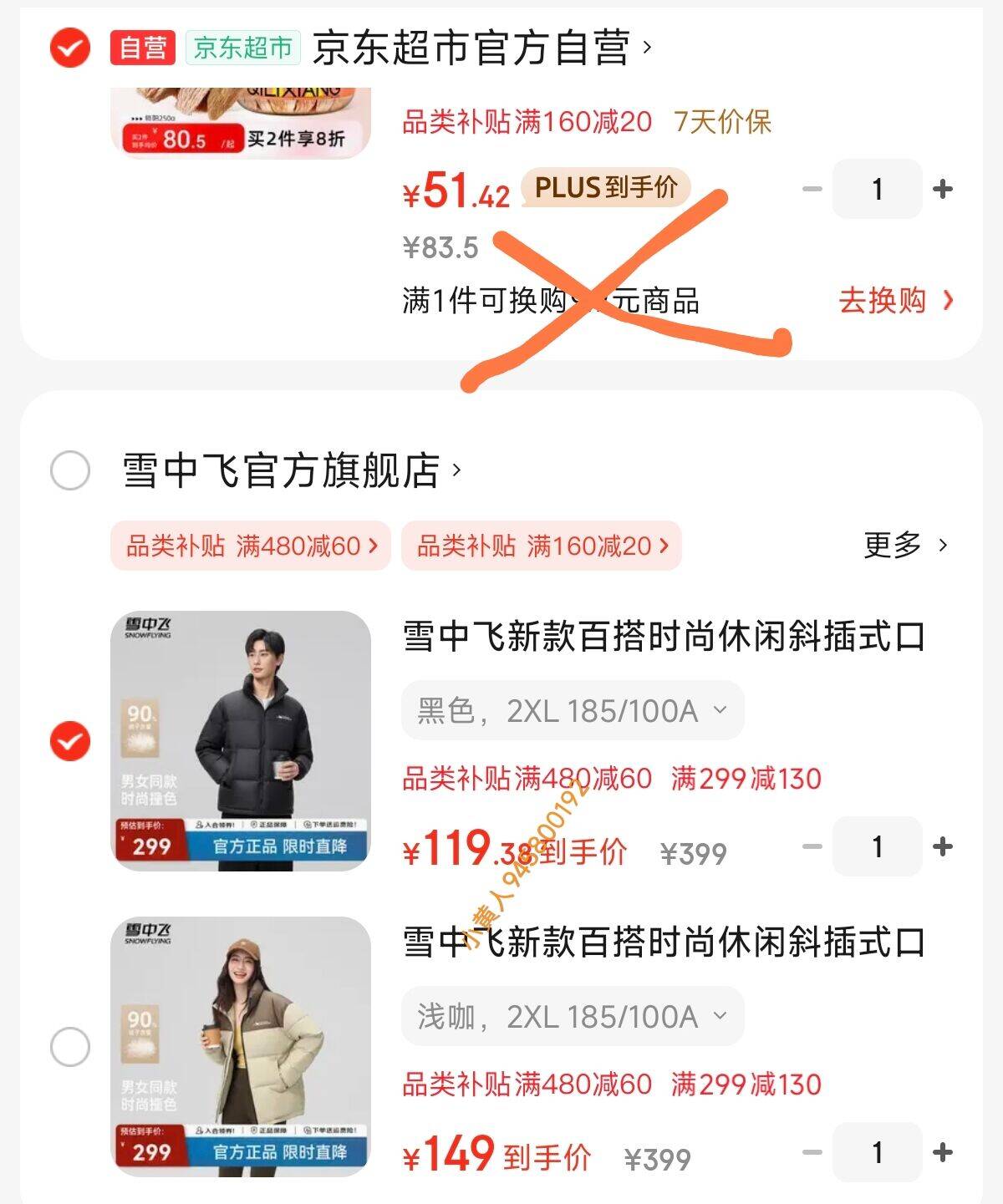 雪中飞 男女保暖立领羽绒服,plus到手119 史低