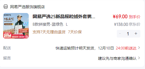 网易严选25新品摇粒绒外套男士夹克冲锋衣内胆