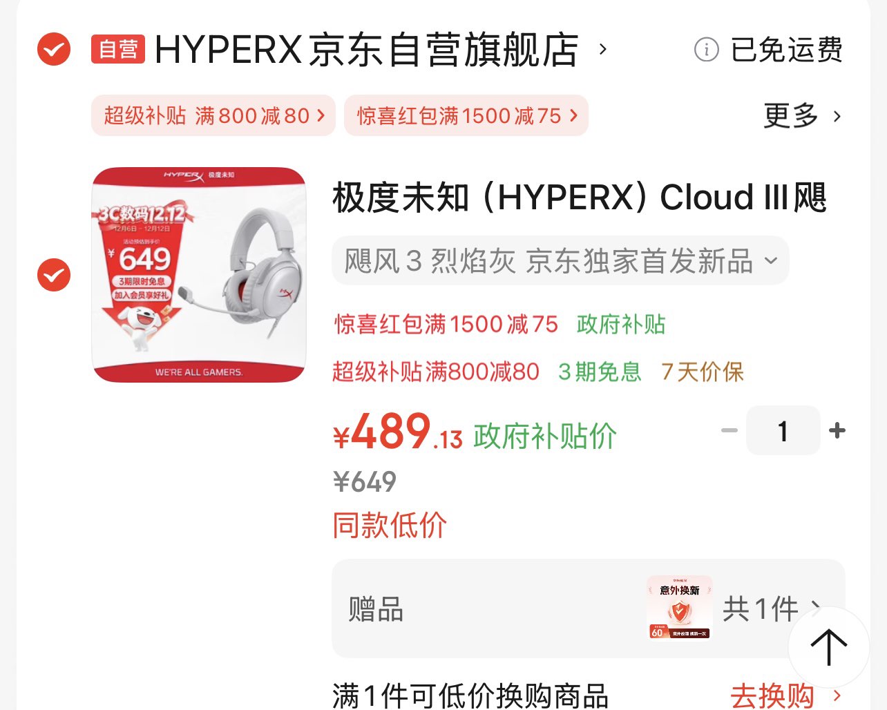 凑单一件,付完退