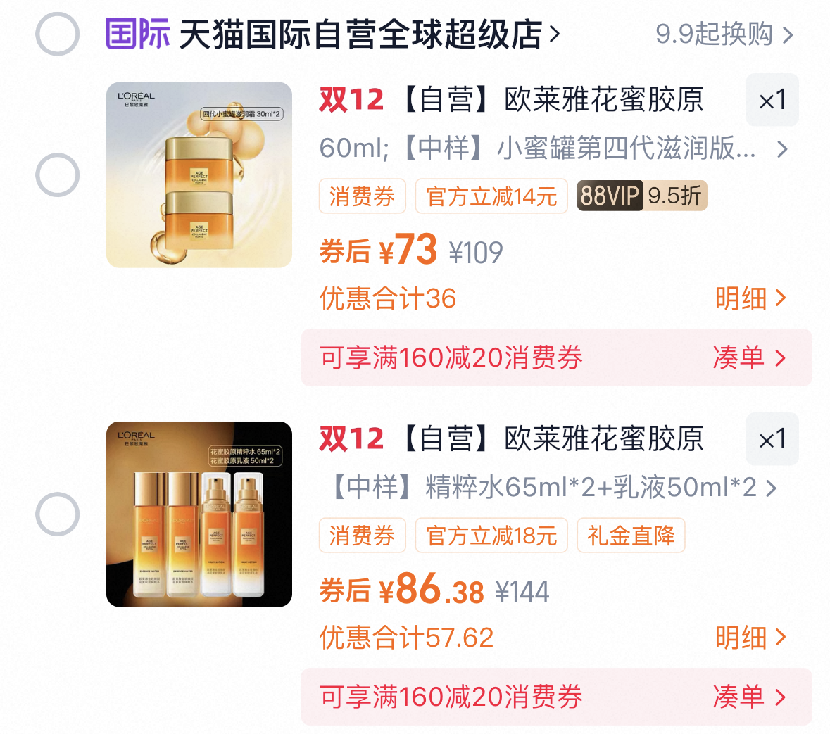 vip73 ~右上角进“淘淦币”拍~ - 好单发报员 2025年12月08日 00:57 0 举报 vip73~右上角进“淘淦币”拍~-【自营】欧莱雅花蜜胶原小蜜罐30ml*2https://m.tb.cn/h.70rxjSc 复制文案