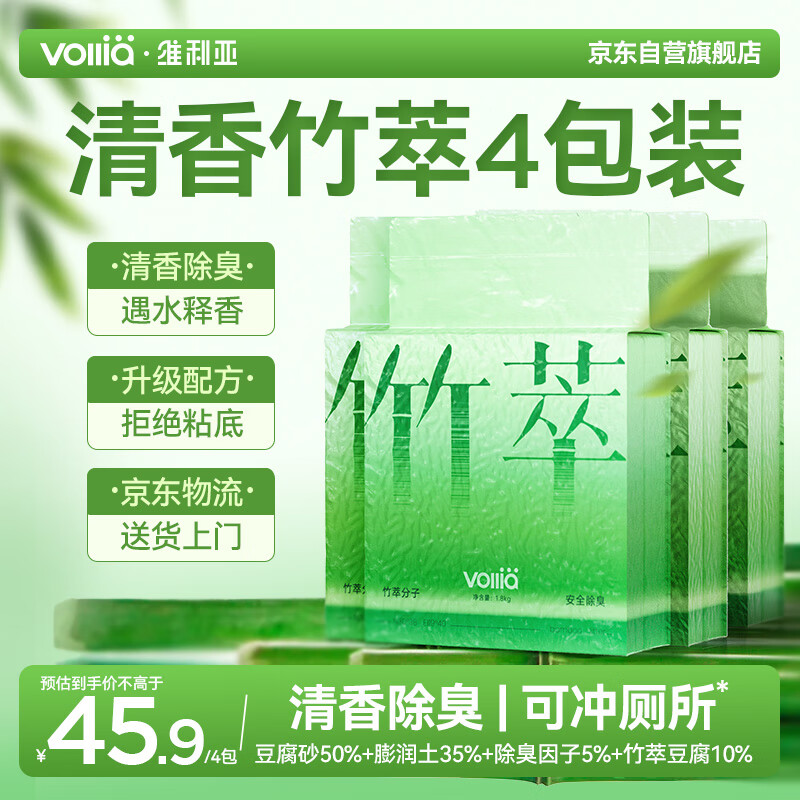 维利亚竹萃豆腐混合猫砂1.8kg*4包