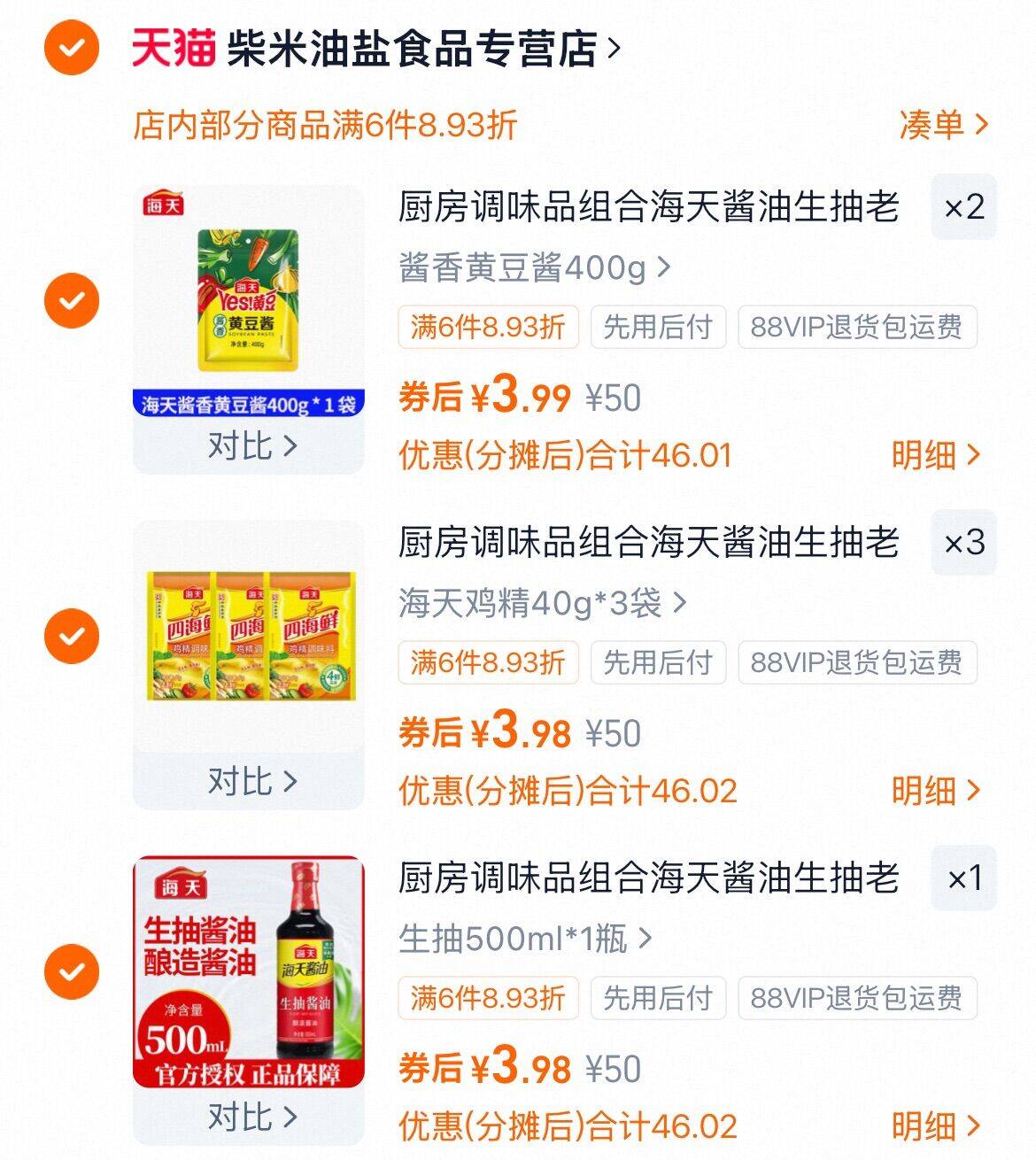拍6件,3.9亓/件 海天酱油生抽蚝油料酒黄豆酱 好单发报员 2025年12月08日 11:25 0 举报 拍6件,3.9亓/件海天酱油生抽蚝油料酒黄豆酱https://m.tb.cn/h.7YdeJi8 复制文案