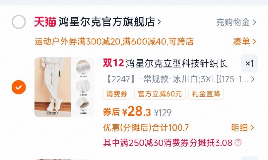 2.凑单品加车一件 一起提交订单后退掉凑单 --- 好单发报员 2025年12月08日 18:57 0 举报 2.凑单品加车一件https://m.tb.cn/h.7b6bxYl一起提交订单后退掉凑单---鸿星尔克加绒卫裤 28.3元 复制文案