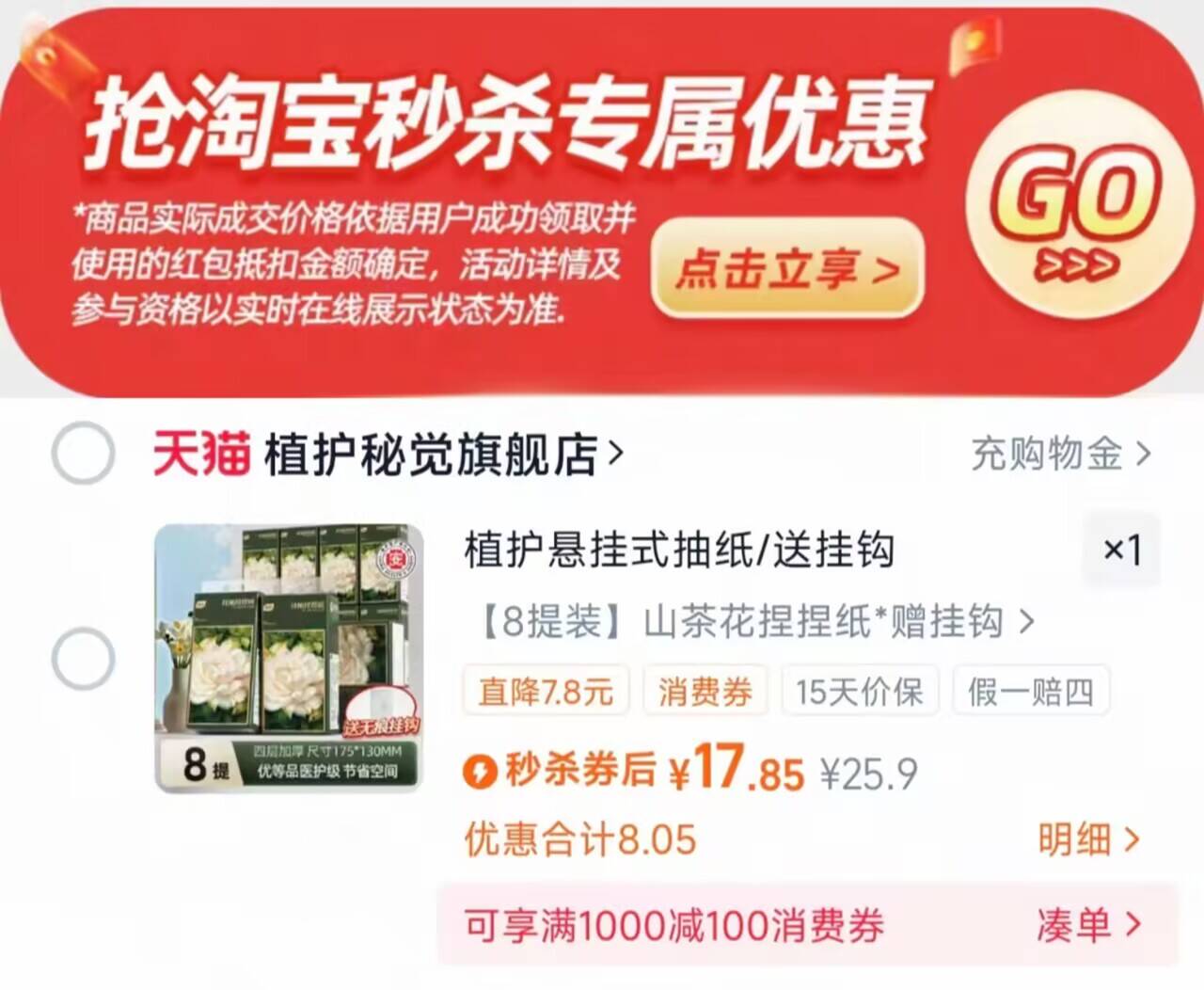 下拉详情页到 陶.寶秒刹 进去,拍下17.8亓 --- 植护.山茶花挂抽8提 好单发报员 2025年12月08日 19:19 0 举报 下拉详情页到【陶.寶秒刹】进去,拍下17.8亓---植护.山茶花挂抽8提送挂钩!四层加厚,多场景可使用!https://m.tb.cn/h.7bMuXA0 复制文案