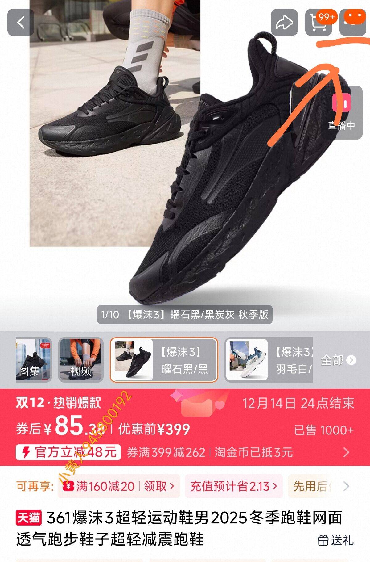 361度爆沫3跑鞋,右上角三个点跳叠淘金币到手85