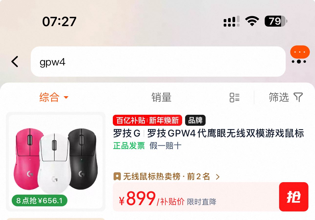 8点开抢,罗技 狗屁王4代鹰眼 菿手656