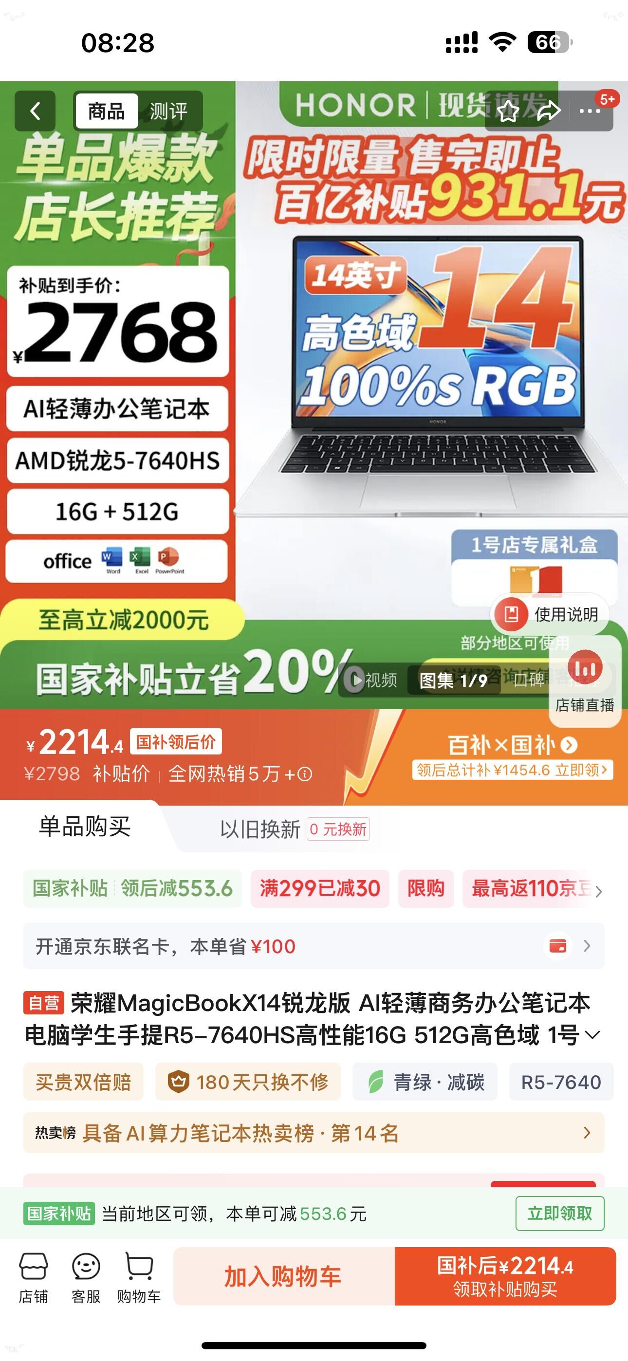 2214 部分地区才有囯补 荣耀MagicBookX14锐龙版 R5-7640HS 16G 512G, 好单发报员 2025年12月09日 09:10 0 举报 【2214】部分地区才有囯补荣耀MagicBookX14锐龙版 R5-7640HS 16G 512G,https://u.jd.com/ZOa83FG 复制文案