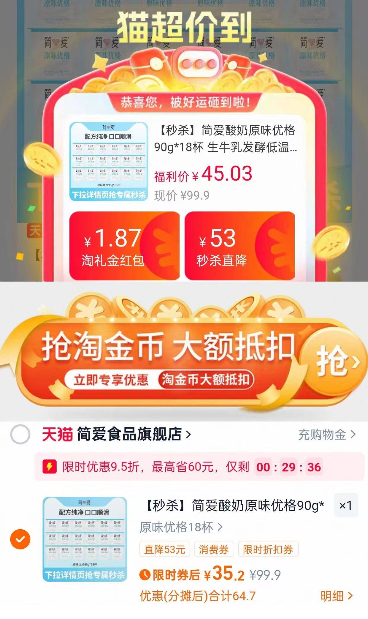 按提示来! 领澧金 下拉详情页 大额抵扣 进去,拍下35.2亓 简爱儿童原味优格酸奶90g×18杯 好单发报员 2025年12月09日 11:07 0 举报 按提示来!领澧金 下拉详情页【大额抵扣】进去,拍下35.2亓简爱儿童原味优格酸奶90g×18杯折1.95亓/杯https://m.tb.cn/h.7bSyker 复制文案
