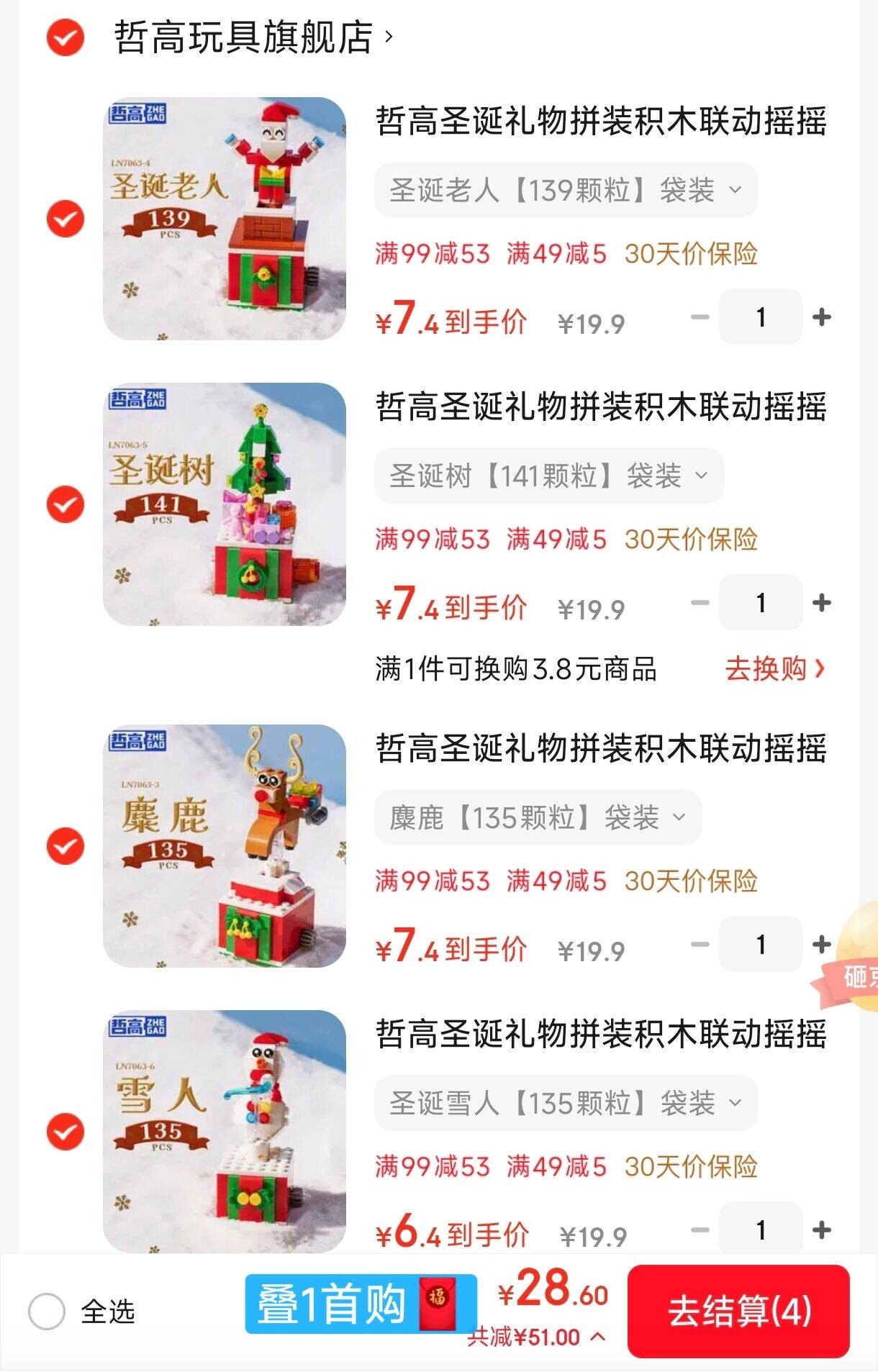 哲高圣诞礼物拼装积木 六款任选拍件29元.6