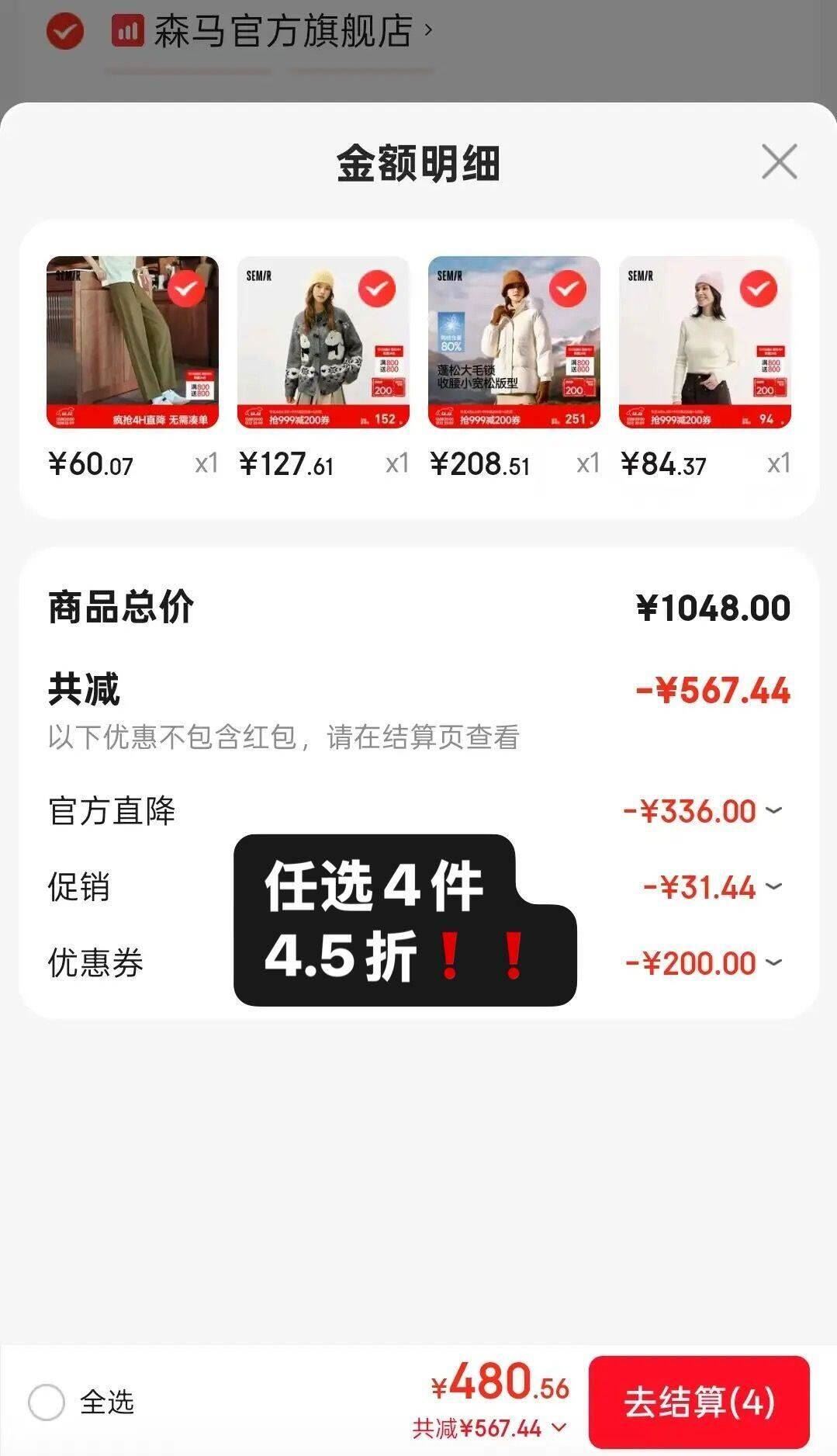 直接拍下1048折后才480亓