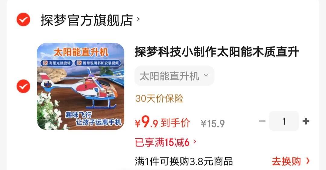 9元.9 孩子自己动手制作 探梦 科技小制作木质太阳能直升机 简单拼装 学习光能转换动能好单发报员2025年12月09日 16:270举报 9元.9 孩子自己动手制作探梦 科技小制作木质太阳能直升机https://u.jd.com/Zg1kV7v 简单拼装 学习光能转换动能复制文案