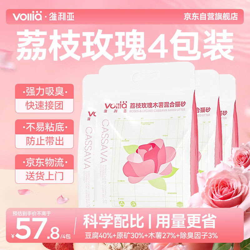 维利亚玫瑰木薯混合猫砂 2kg*4 包