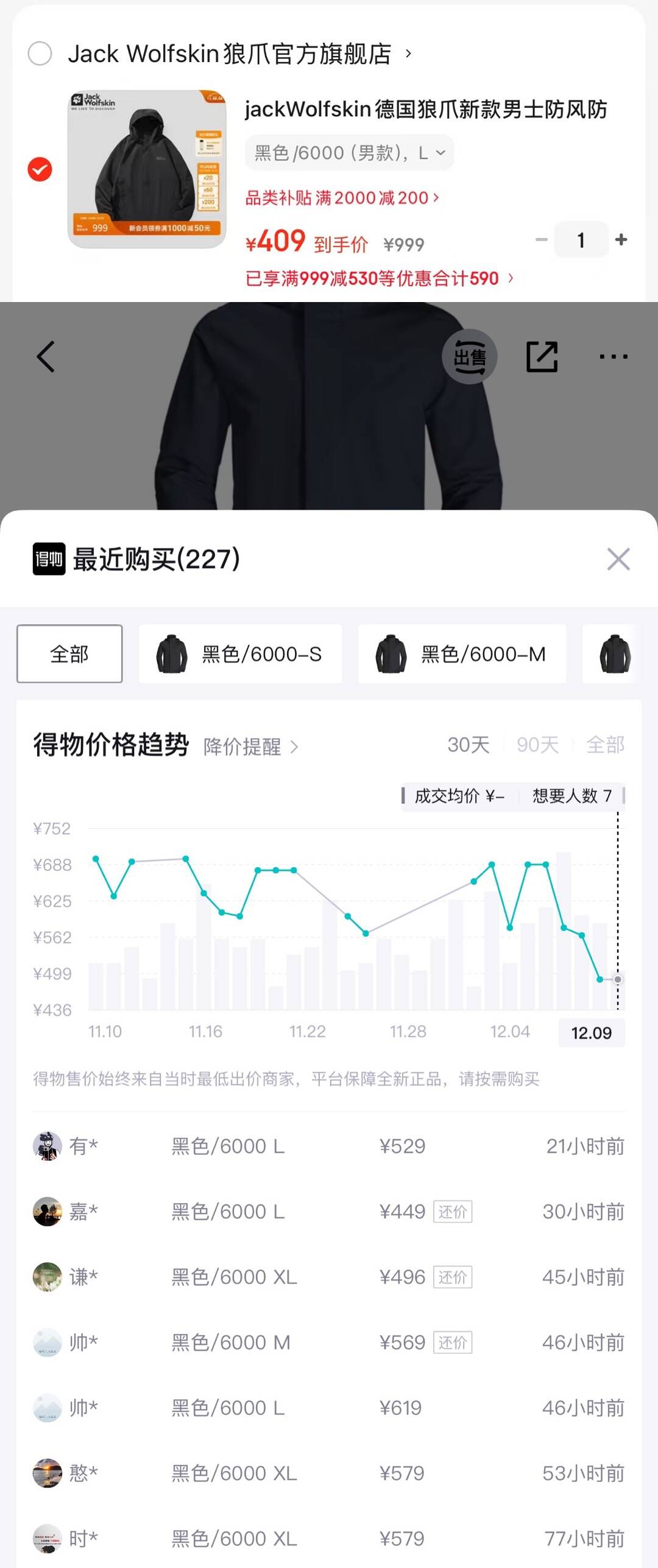 狼爪夹克到手409锝物559购物金更低货号1111142