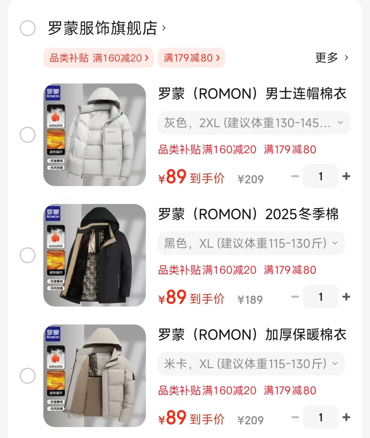 罗蒙 (ROMON)男士连帽棉衣,任选1款【89】