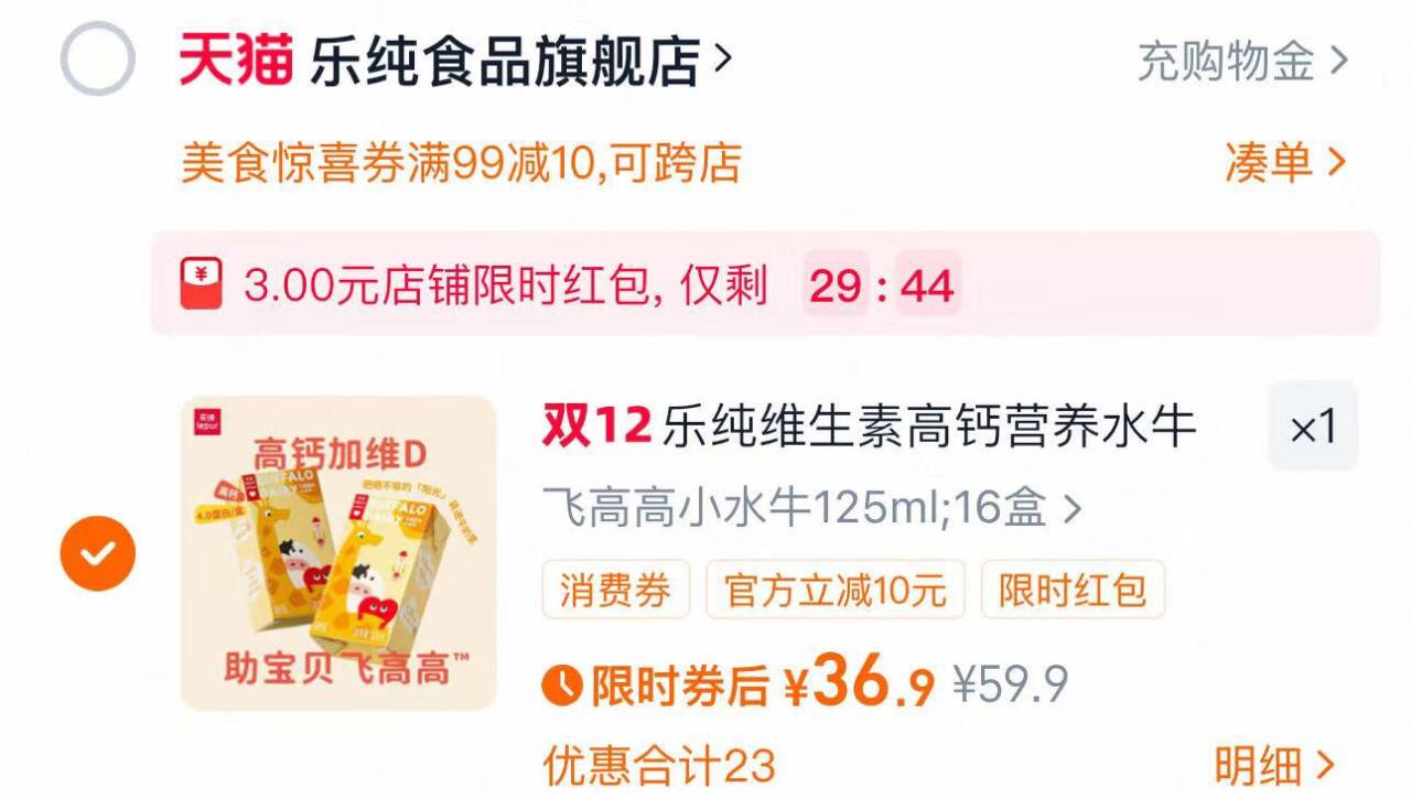 39.9亓 乐纯食品旗舰店 如弹3亓虹包 36.9亓 折2.3/盒 乐纯高钙营养水牛牛如125ml*16盒 好单发报员 2025年12月10日 13:36 0 举报 39.9亓 乐纯食品旗舰店如弹3亓虹包 36.9亓 折2.3/盒乐纯高钙营养水牛牛如125ml*16盒https://m.tb.cn/h.7YBdBF9 复制文案