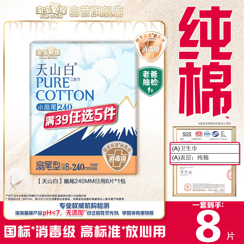 淘淘氧棉 天山白纯棉消毒级日用卫生巾组合