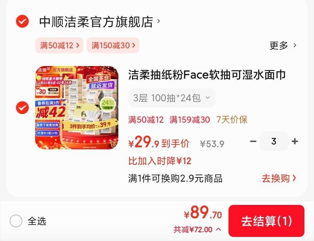 拍3箱89.7元 共72包