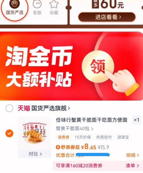 8.6亓速下拉详情拍 任味行蟹黄干脆面40包