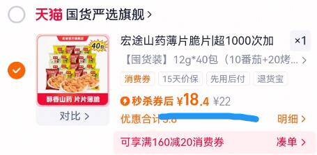 18.4亓速拍第2选项 宏途山药薄脆片12g*40包 好单发报员 2025年12月10日 21:43 0 举报 18.4亓速拍第2选项宏途山药薄脆片12g*40包https://m.tb.cn/h.71fdbtH 复制文案