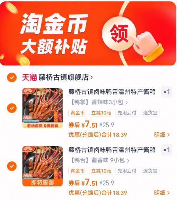 0.8亓/包下拉啪2件15亓 解馋小零食安排,拍9包选项 藤桥 温州酱香鸭舌18包 好单发报员 2025年12月10日 22:16 0 举报 0.8亓/包下拉啪2件15亓解馋小零食安排,拍9包选项【藤桥】温州酱香鸭舌18包https://m.tb.cn/h.7YATktB这个线下熟食店你不知道有多贵 复制文案