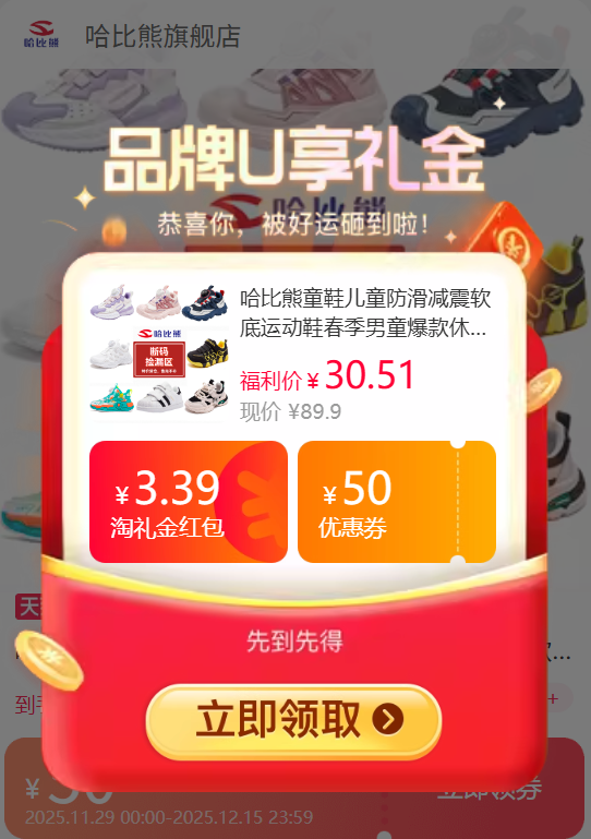 30.5元 哈比熊童鞋儿童防滑减震软底运动鞋