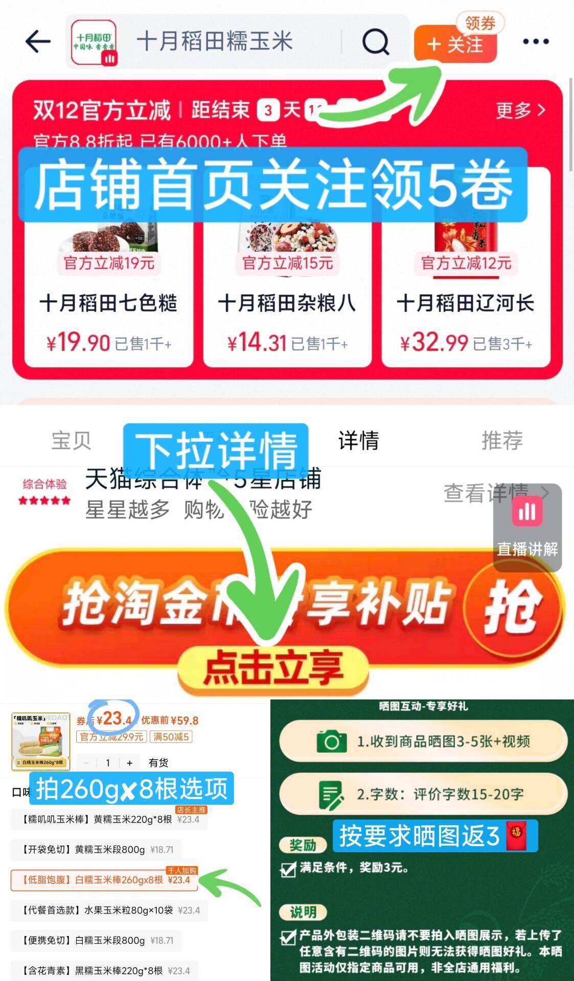 店铺关注领5券 下拉详情抵1.5琻币 拍260g*8根选项付23元.4好单发报员2025年12月11日 12:540举报 店铺关注领5券下拉详情抵1.5琻币拍260g*8根选项付23元.4晒图反3=20元.4到手十月稻田低脂糯玉米https://m.tb.cn/h.718iEXj复制文案