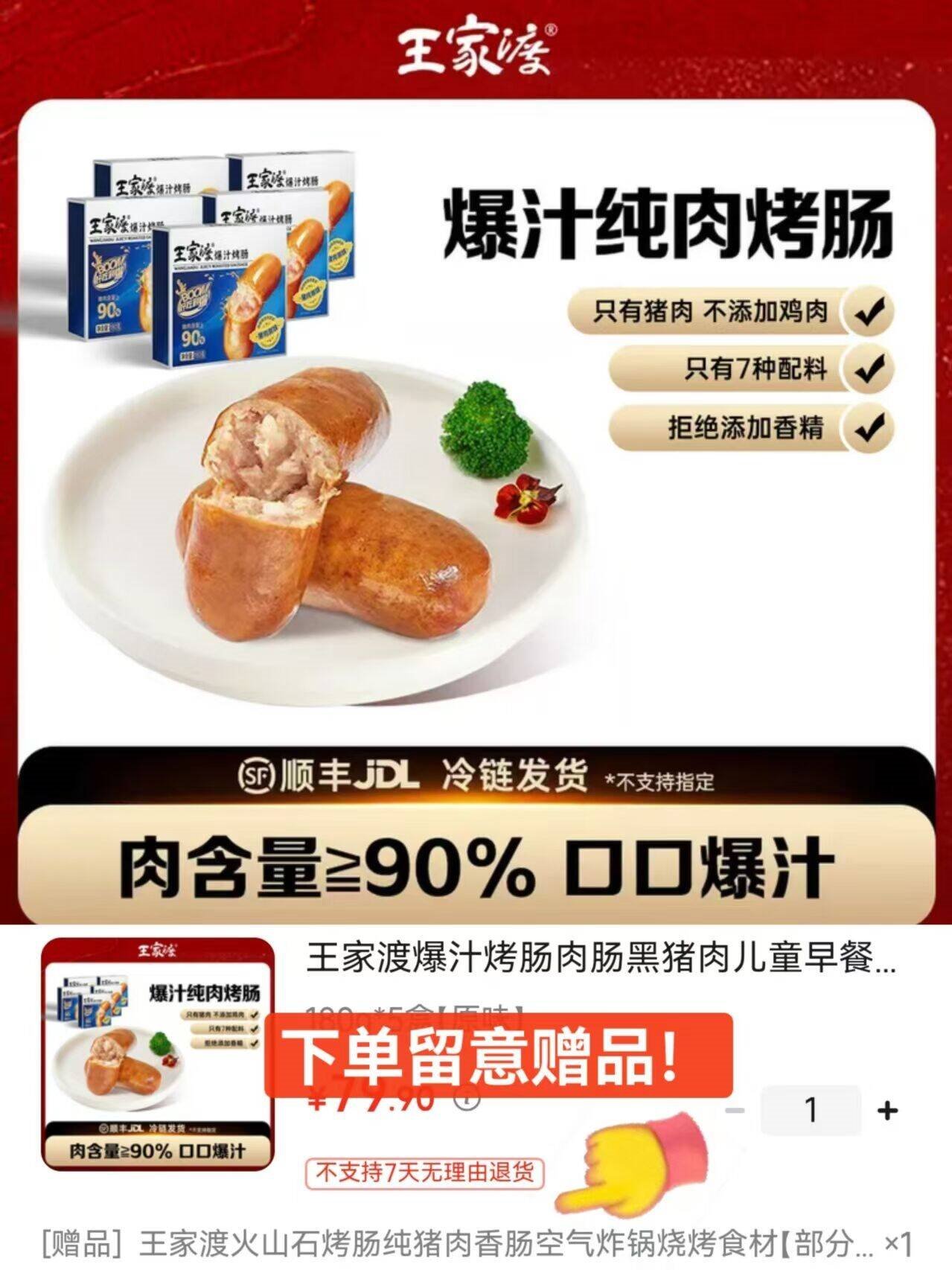 王家渡烤肠发車 王家渡 原味爆汁烤肠180g*5盒 69.9亓,再赠烤肠120g*3盒 好单发报员 2025年12月11日 13:35 0 举报 ——王家渡烤肠发車——王家渡 原味爆汁烤肠180g*5盒https://u.jd.com/ZOnXscG69.9亓,再赠烤肠120g*3盒*折8.7亓/盒 一口爆汁都是肉 复制文案