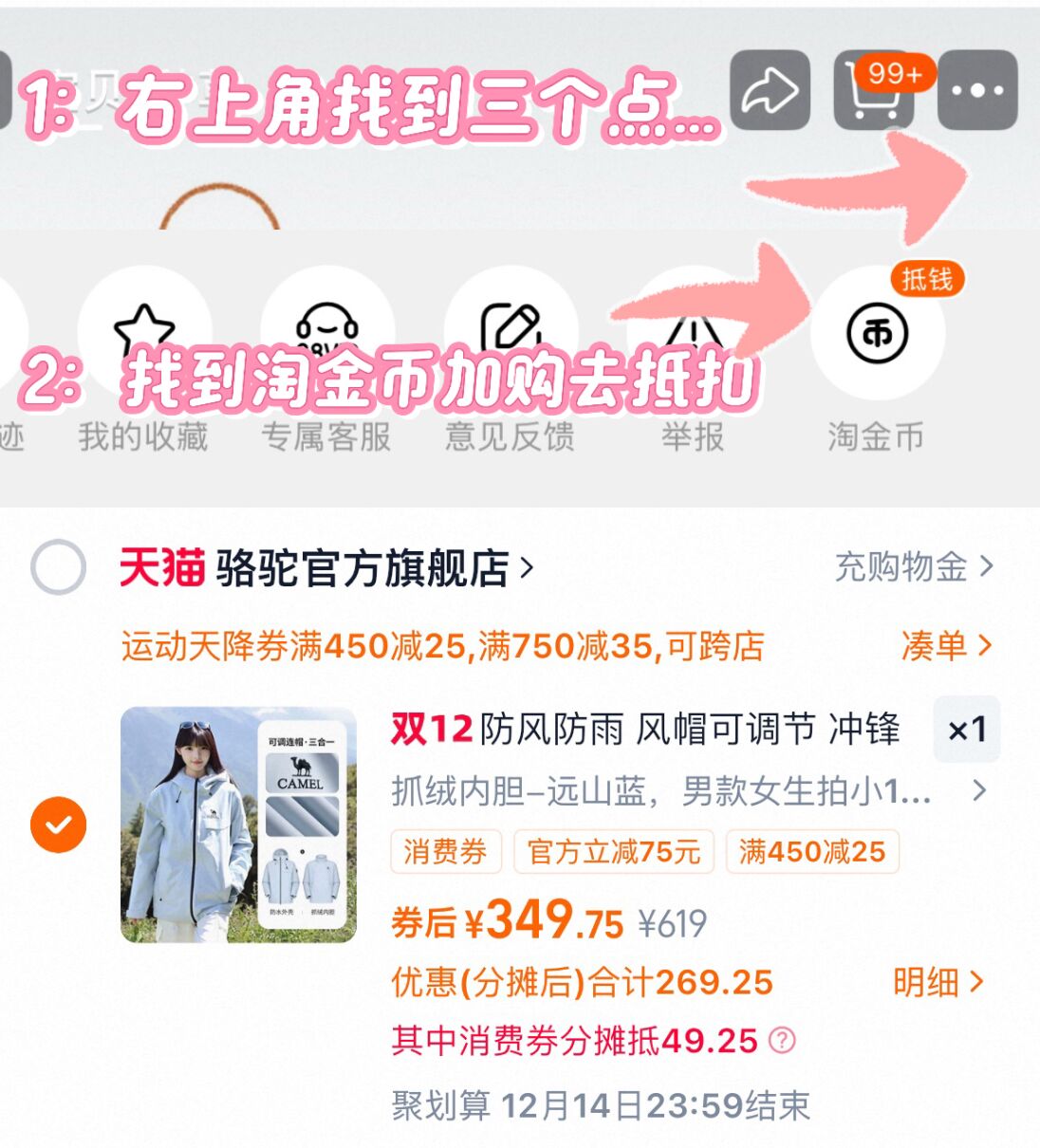 5、凑单加车1件 一起付款,然后退掉凑单 骆驼三合一冲锋衣到手349元 好单发报员 2025年12月11日 13:42 0 举报 5、凑单加车1件https://m.tb.cn/h.71Q4TkU一起付款,然后退掉凑单骆驼三合一冲锋衣到手349元 复制文案