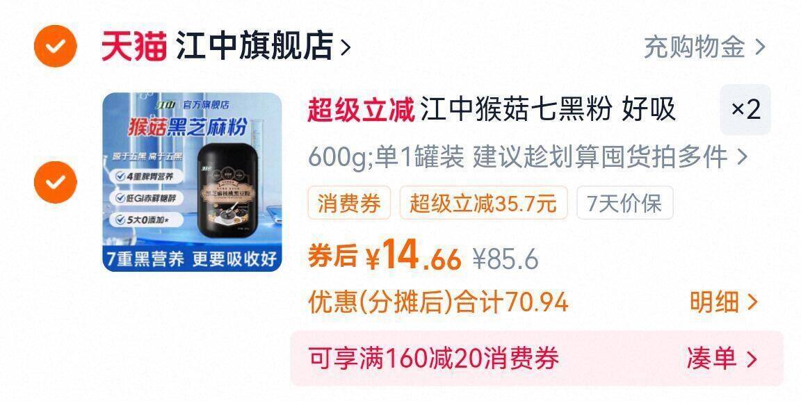 反复打开领2次奍 14亓/罐锁!拍2件29亓 江中七黑粉黑芝麻糊600g*2 好单发报员 2025年12月11日 16:10 0 举报 反复打开领2次奍14亓/罐锁!拍2件29亓江中七黑粉黑芝麻糊600g*2https://m.tb.cn/h.7cqy4LU 复制文案