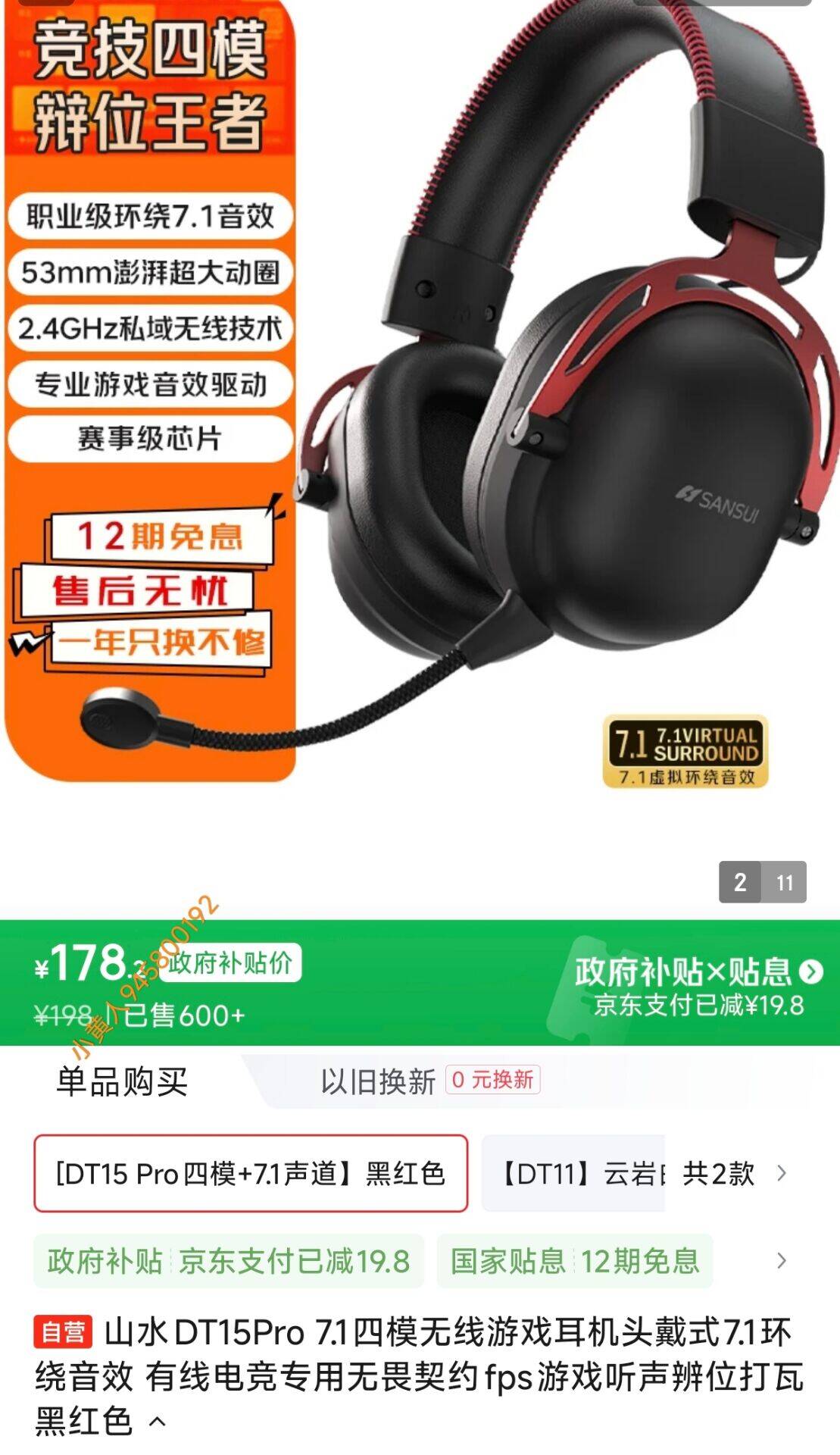 山水DT15 Pro 7.1四模无线游戏耳机,20点预计到手80 左右