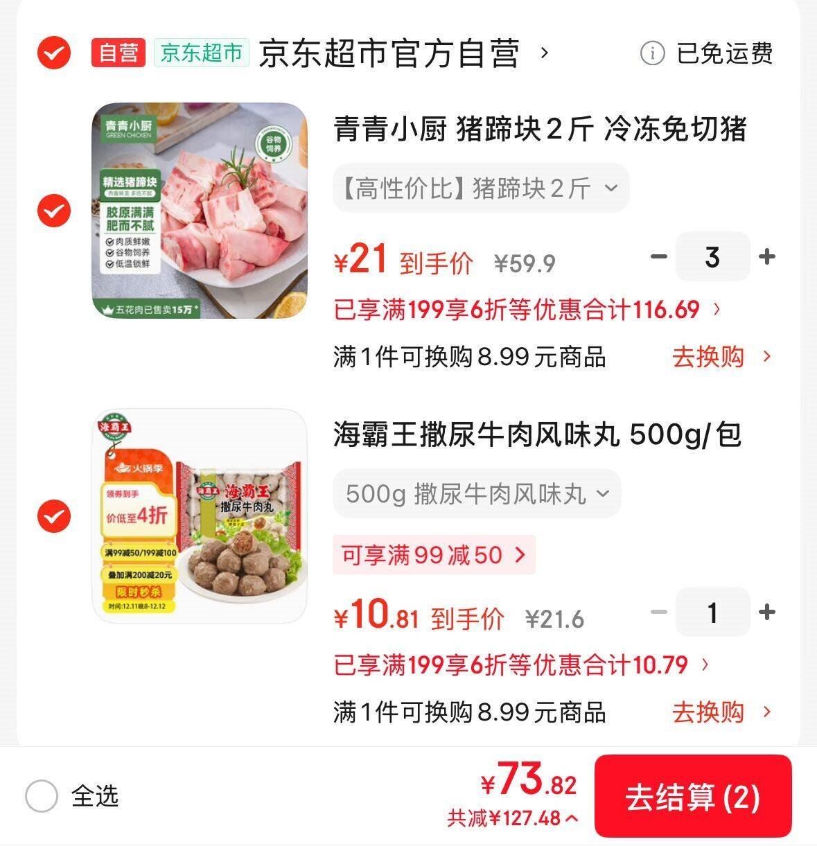 青青小厨 絻切猪蹄块2斤 买3