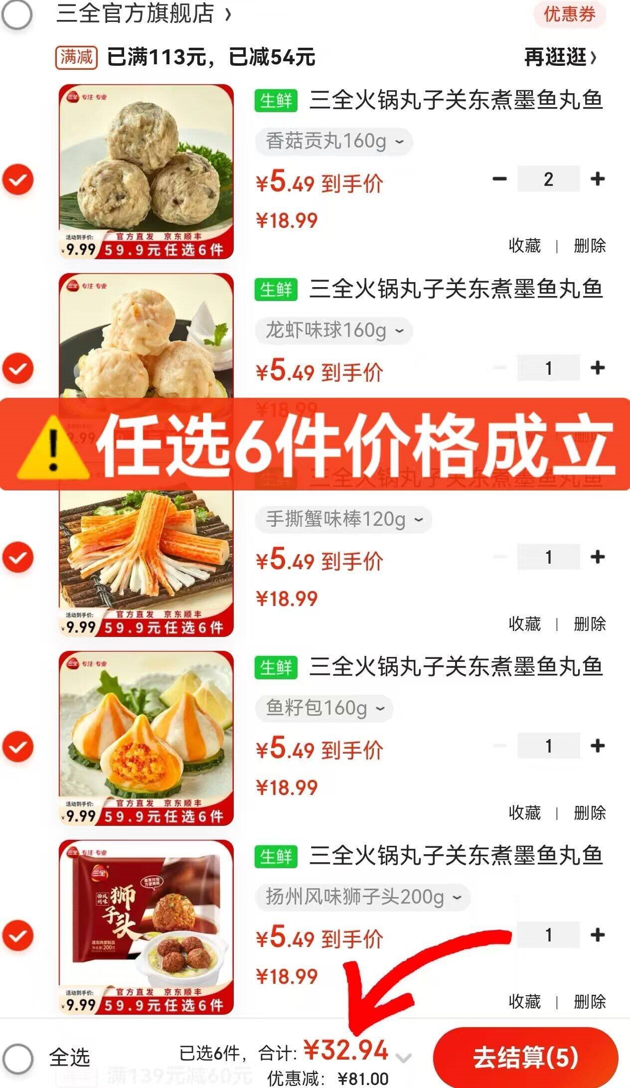 火锅食材降忦啦 三全 丸子/虾滑/鱼豆腐/春卷 任选6件32.9亓,折5.4亓/袋好单发报员2025年12月12日 09:270举报 ——火锅食材降忦啦——三全 丸子/虾滑/鱼豆腐/春卷https://u.jd.com/ZgPnzZG任选6件32.9亓,折5.4亓/袋*种类多样 轻松搞定火锅大餐复制文案