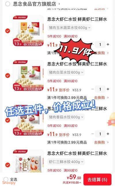 折11.9元/件!每个饺子都有 思念 大虾仁系列水饺 任选5件59.5元 多款任选搭配 好单发报员 2025年12月12日 09:31 0 举报 折11.9元/件!每个饺子都有思念 大虾仁系列水饺https://u.jd.com/ZGPNVGN 任选5件59.5元 多款任选搭配 复制文案