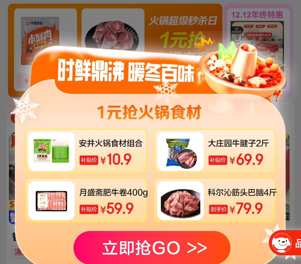 10点1亓抢火锅食材