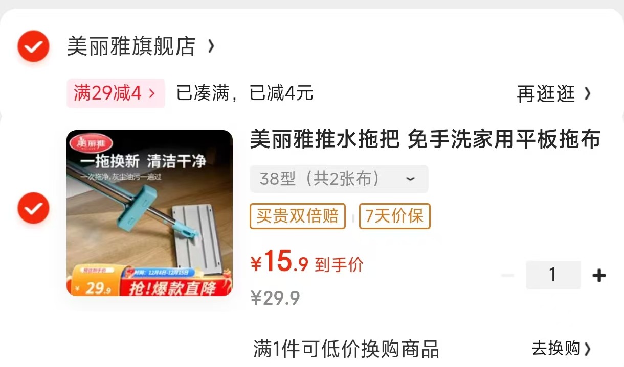 美丽雅推水拖把 38型共2张布,京东购物小程序 提交【15.9】