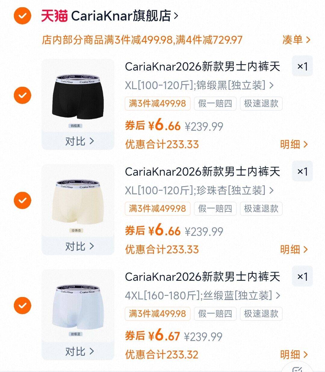3件19.9元XL~4XL碼 CariaKnar天丝蜂窝男士内裤 很轻薄不卷边!释放大腿根 好单发报员 2025年12月12日 12:16 0 举报 3件19.9元XL~4XL碼CariaKnar天丝蜂窝男士内裤很轻薄不卷边!释放大腿根多备几条勤换洗更健康嗷-https://m.tb.cn/h.7c9HTpY 复制文案