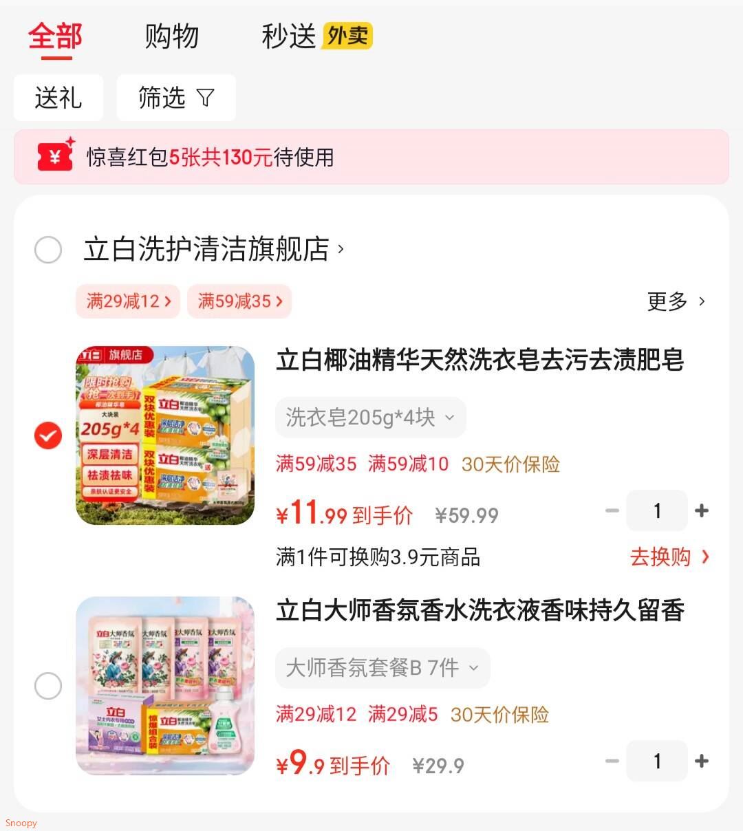 立白 椰油精华天然洗衣皂205g*4块 11.9 赠35g洗衣粉 立白 大师香氛香水洗衣液7件套 9.9 好单发报员 2025年12月12日 12:39 0 举报 立白 椰油精华天然洗衣皂205g*4块【11.9】赠35g洗衣粉https://u.jd.com/ZD0rZYB 立白 大师香氛香水洗衣液7件套【9.9】https://u.jd.com/ZO0GSTp 复制文案