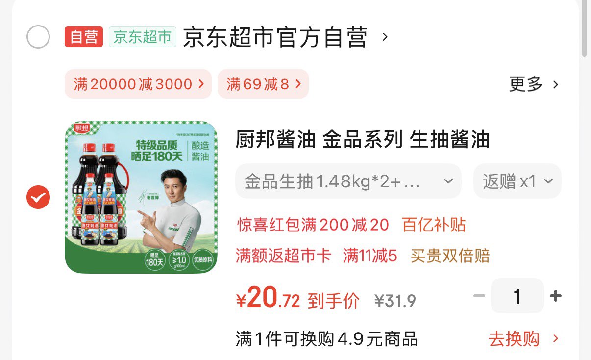 厨邦金品生抽1.48kg*2 渔女蚝油490g*2瓶4件套组合