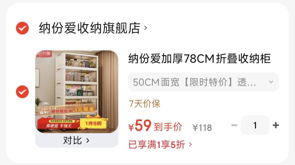 5折纳份爱免安装收纳柜 付59嗮图反3=56元! 长50*宽25cm*层加厚好单发报员2025年12月12日 18:190举报 5折纳份爱免安装收纳柜付59嗮图反3=56元!长50*宽25cm*层加厚https://u.jd.com/Z6BYCxk复制文案