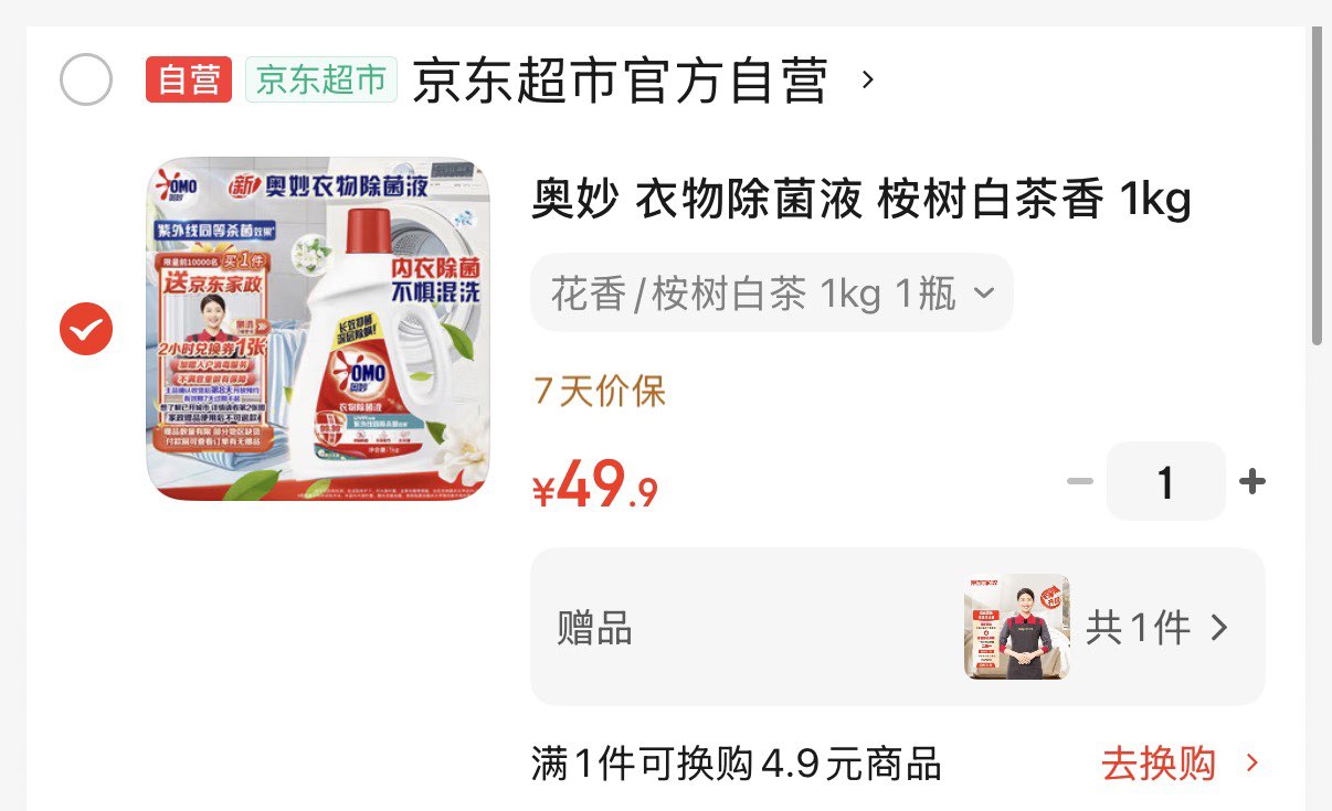 奥妙衣物除菌液 1kg 拍下49.9亓 赠家政2小时 好单发报员 2025年12月12日 20:48 0 举报 奥妙衣物除菌液 1kg拍下49.9亓 赠家政2小时https://u.jd.com/Zap3XB6 复制文案