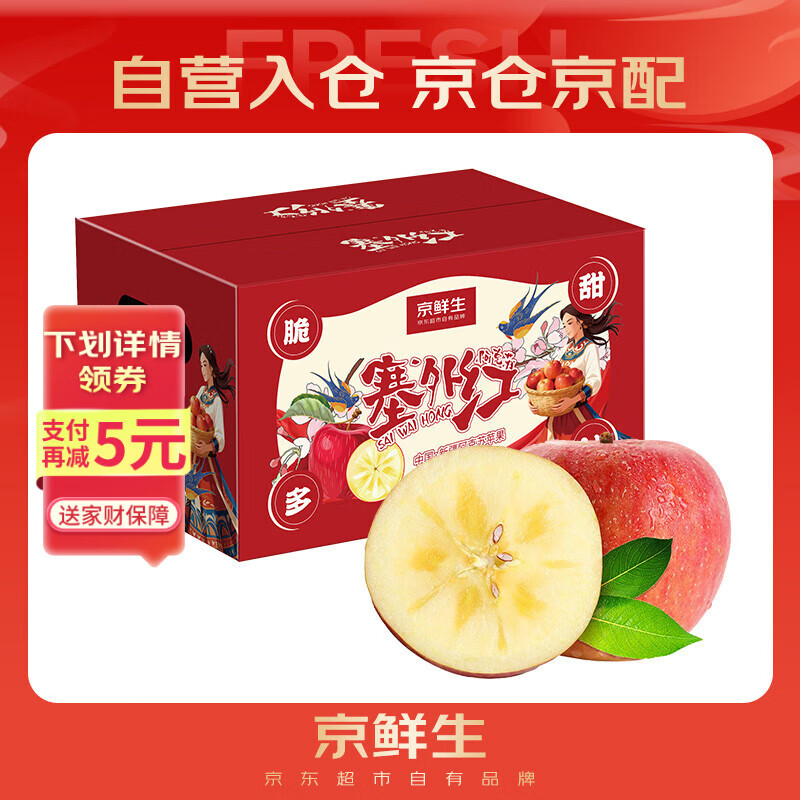 京鲜生 塞外红 阿克苏苹果 5kg(单果180g )果径80~85mm